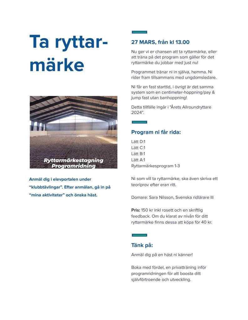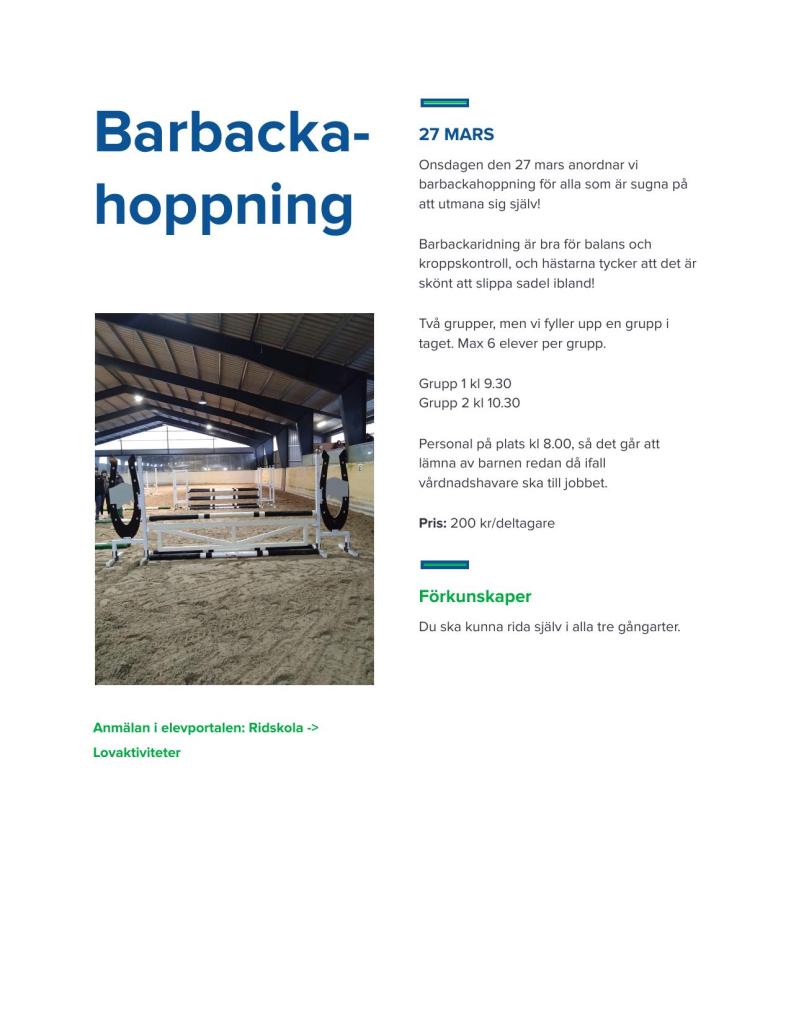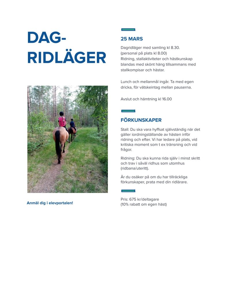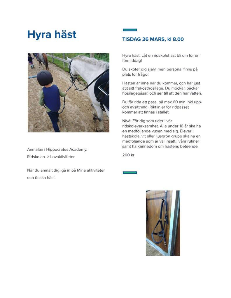 Nedan hittar ni våra dagaktiviteter, så som hyra häst och dagridläger. Dessa har en deltagaravgift som är lite olika.