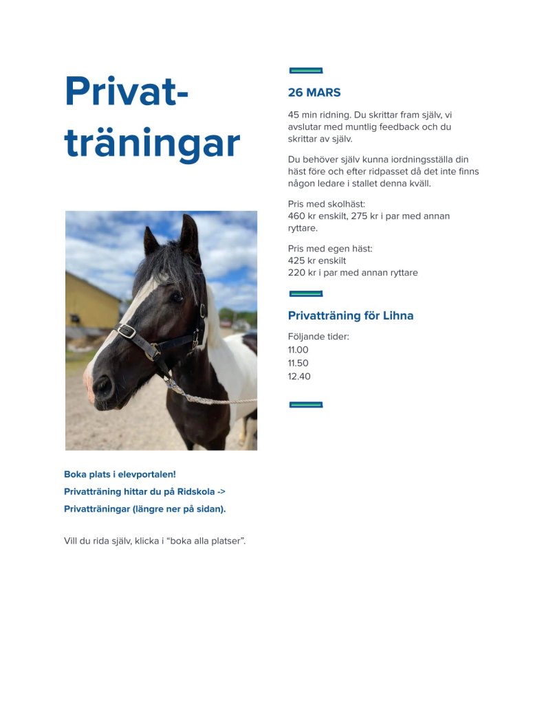 Här bredvid hittar ni lovveckans kvällsaktiviteter, dvs de aktiviteter vi kör istället för din vanliga ridlektion.